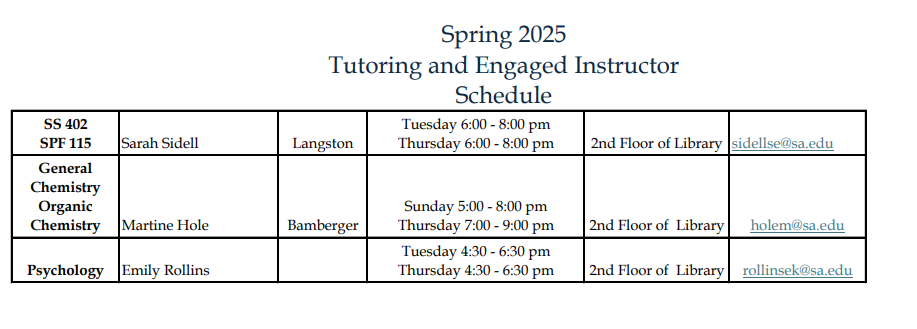 If you meet the above requirements please contact Tonia Hunt, Director of Academic Success at [email protected] or come by my office located on the 2nd floor of the Library (located across from the elevator).