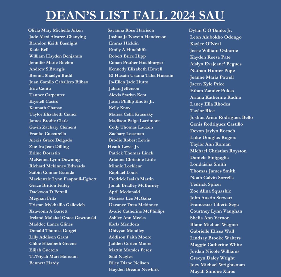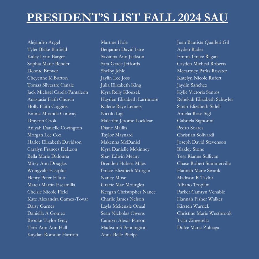 Thank you all for making SAU the special place it is. We love having you here and appreciate what each one of you brings to our community.